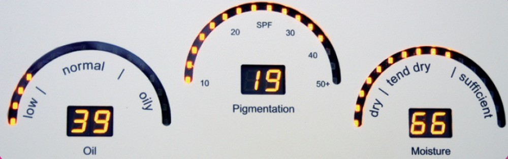 • ocenite vsebnost olj (sebuma) na koži in laseh. Rezultati se prikažejo na zaslonu: malo olj, normalna in mastna koža.