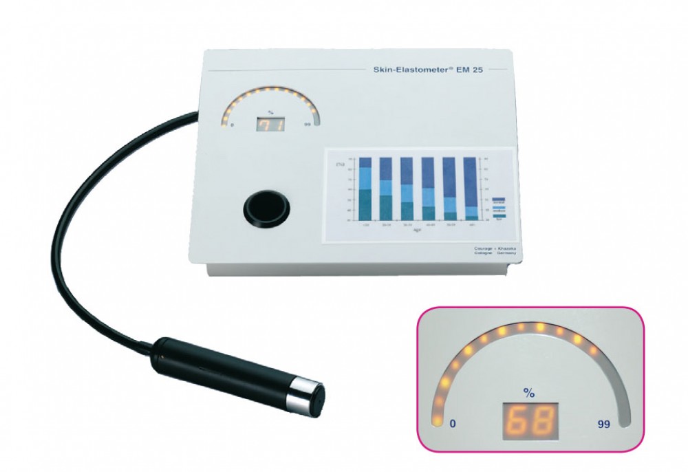 Najbolj uporabljena sonda za merjenje prožnosti kože na svetu z zaslonom in razlagalno preglednico. Preprosto in hitro izmeri prožnost kože (biološko starost kože) z vakuumsko metodo (odpornost/čvrstost v primerjavi s sposobnostjo, da se vrne v prvoten položaj). Rezultati so navedeni v %, preglednica pa pomaga povezati meritve s starostjo.